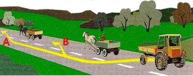 По какой траектории водитель трактора может произвести обгон гужевых повозок?